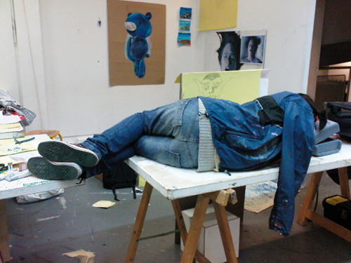 Trois œuvres en situation seront également présentées dans les couloirs de la galerie. Elles empruntent leurs formes à des éléments mobiliers ou architecturaux puisés dans l'espace urbain et prennent place dans l'intimité froide de cet espace intérieur.
