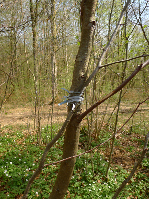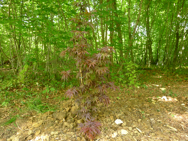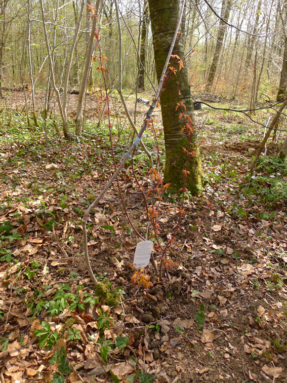 Vue d’un érable planté sur la parcelle 31P1 / Grafting, rubber and grafting mastic on plot 31P1