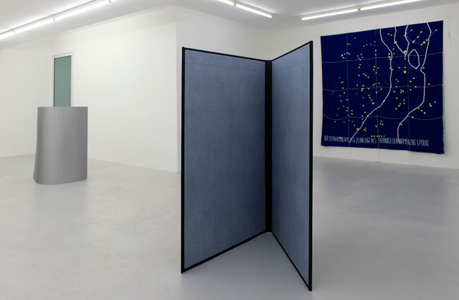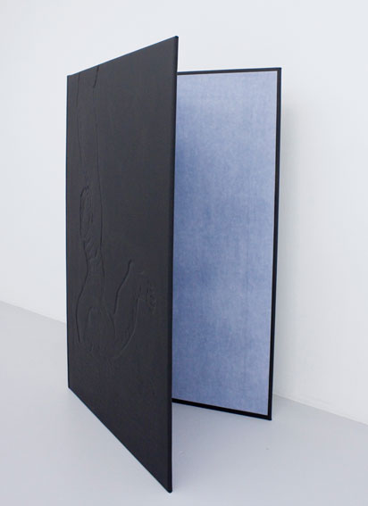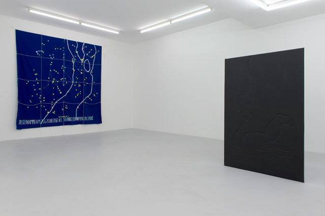 Among the works specially created for the exhibition is a new, cosmic kind: "Maquette pour une robe à partir de l'œuvre Sternenhimmeltuch (1968) de Sigmar Polke, paraphée I. Luche" not only involves borrowing and reusing an enigmatic title, it is also a reproduction of a constellation in which Sigmar Polke wrote his name in 1968. Here Luche overlays her own name and transforms this space cloth into the latest-born of her Ghost Dresses series. After all, why not use one's stars as adornment? Also to be found in this exhibition is a blow-up of a book inscribed with a drawing of Achilles. The common factor is doubtless right here, in the world: the base he deliberately left so as to see himself plunge into the river…