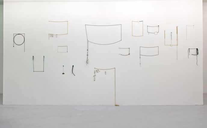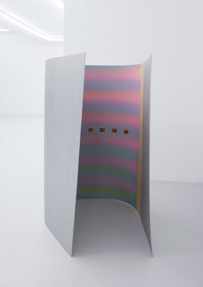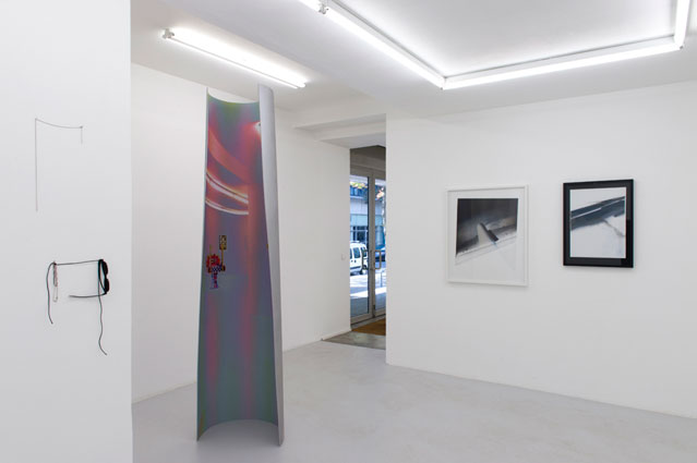 It was after taking photographs of the space she would later use that the artist realised that the vibrations of the fluorescent lighting at Air de Paris set the gallery undulating. Ingrid Luche then decided to alter the frame of reference by using another artist's exhibition views as part of her project. The works on show here are the outcome of this use of curved space, creating a new vision by, among other things, bringing points in space closer than they were before — something already theoretically feasible in the field of cosmology.