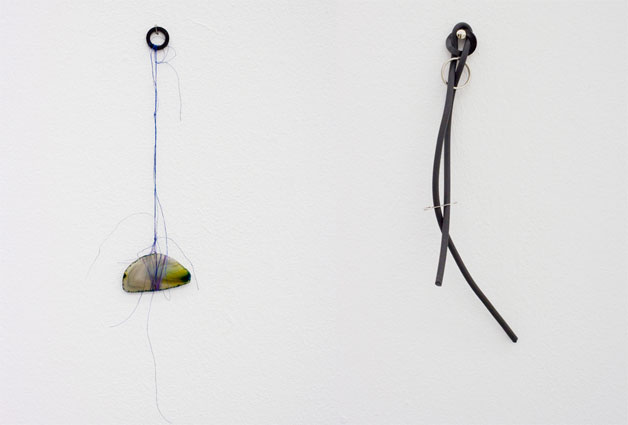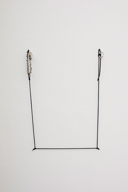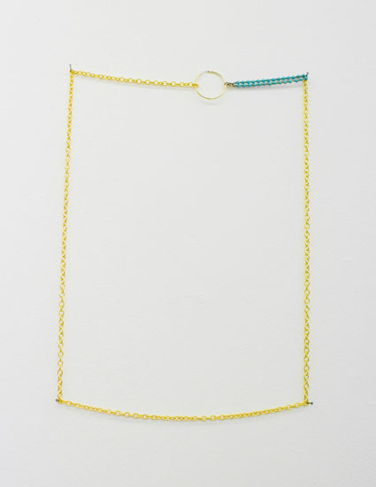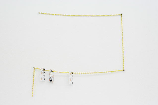 The Gatineau-Paris jewels put together fragments of found jewels to DIY or museum’s shop products to create a wall jewel. These pieces come from the creation of accessories made for the pieces Anomalie temporelle, Amnésie temporaire (12 novembre 2013 - 26 janvier 2014) during a residency in Gatineau, Quebec in 2014. Their titles contains thereby their origin : Gatineau and their destination/exhibition : Gatineau-Séoul, Gatineau-Paris… For the exhibition at Air de Paris, the jewels’ wall mostly articulates itself around the rectangle outline of each piece. By surrounding white spaces, each jewel aim to come closer of a sketch or a map whose fasten accessories would give as much clues picked up on the surveyed territories.