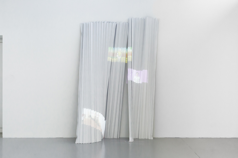 Vidéo, 4 minutes 28 secondes projetée sur papiers dos bleu plissés / Video, 4 minutes 28 seconds projected on blue folded back papers