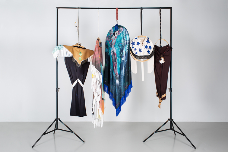 A photograph prior to a work by artist Richard Prince becomes the motif of a dress or cape by Ingrid Luche. In parallel to this series of sculptures/dresses that are impossible to wear because they are oversized, the artist is interested in another figure, that of the YouTuber Nasim Aghdam, a vegan and animal protection activist. Accusing YouTube of censorship, she went to the company’s headquarters in 2018 with a gun and injured several people before committing suicide.
