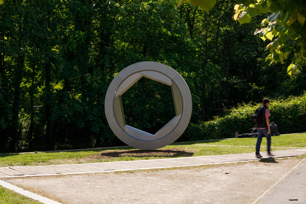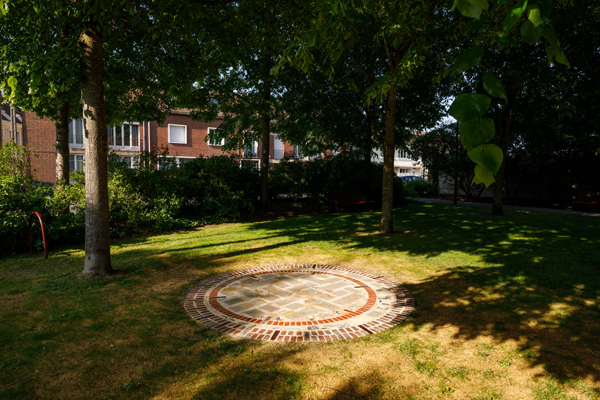 Watteeuw measures 3 meters in diameter and is flush with the grass on the ground.